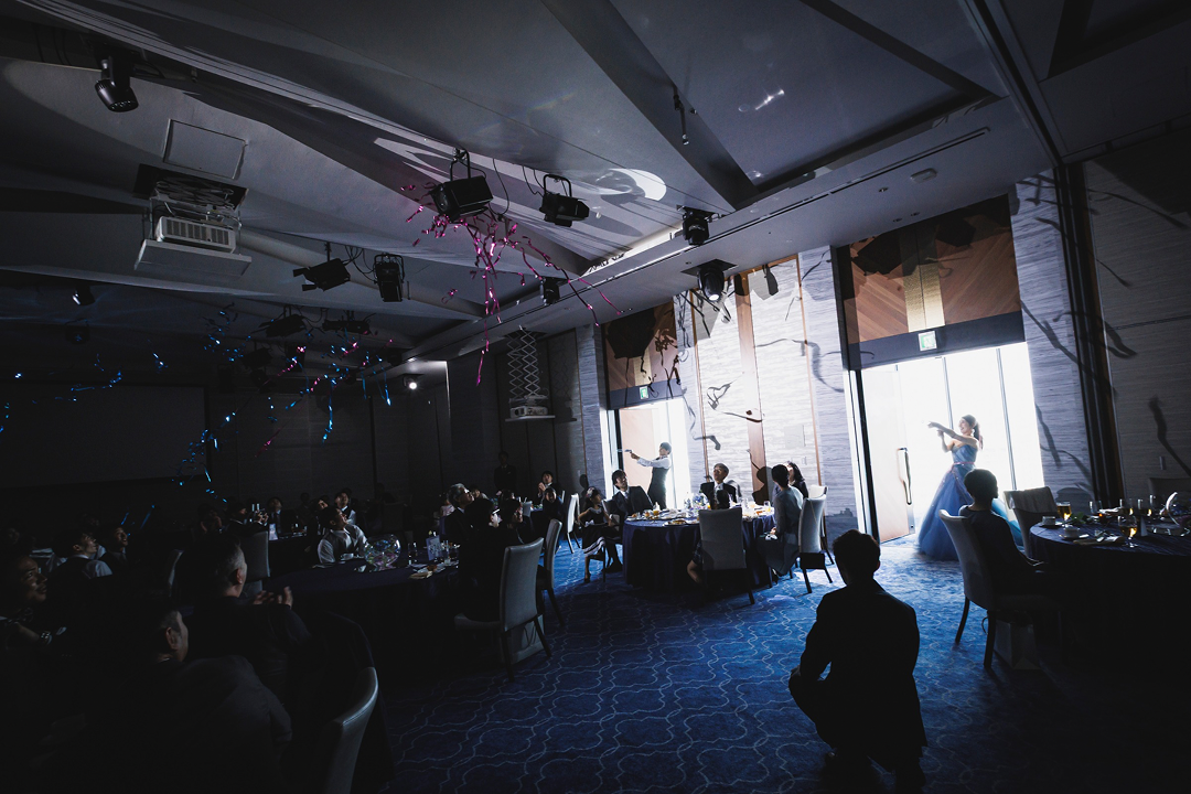 会場に響く大きな音と共にテープが勢いよく発射。パーティー演出の定番のテープシューターはいかがでしょうか。室内の会場やチャペル、ガーデンなどの屋外でも共に使用可能ですので、幅広い”決めの一瞬”にご利用いただけます。金や銀のテープ、メタル吹雪など内容は選択可能です。披露宴のワンアクセントに是非ご利用ください。